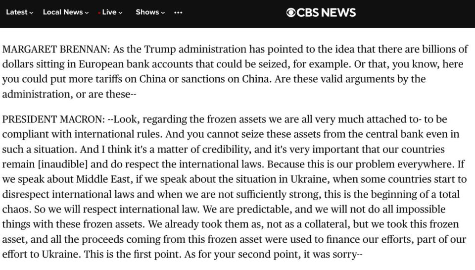 Взвесив все «за» и «против», Макрон в интервью телеканалу CBS заявил:
