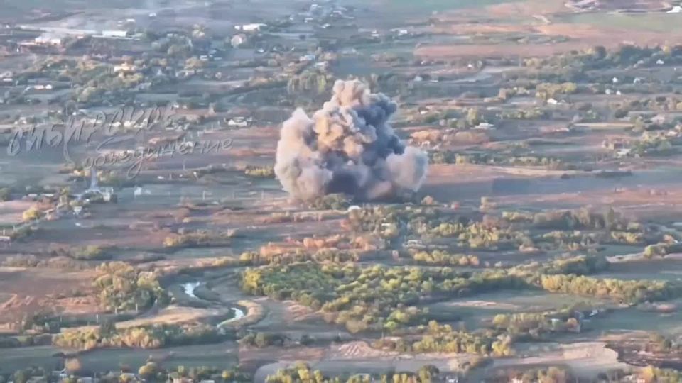 Сброс мощной фугасной авиабомбы ФАБ-3000 на мост через реку Солона в Новопавловке Днепропетровской области