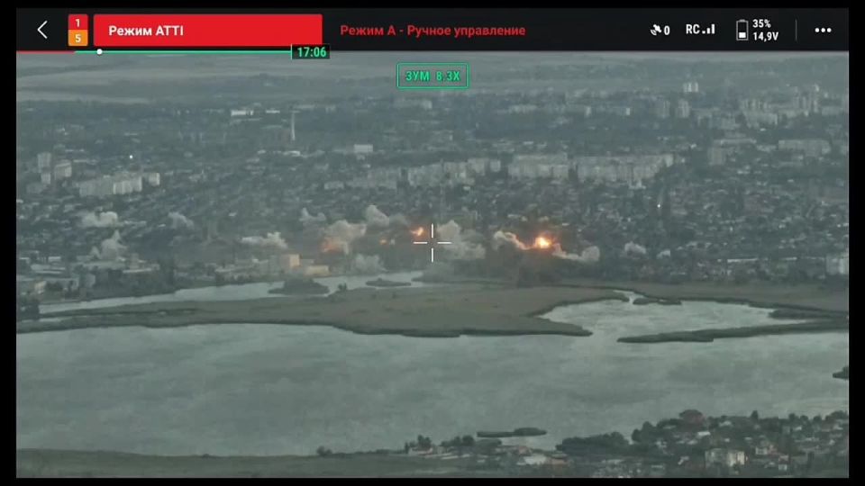 Кадры объективного контроля cерии прилетов РСЗО по позициям ВСУ на правом берегу Днепра.