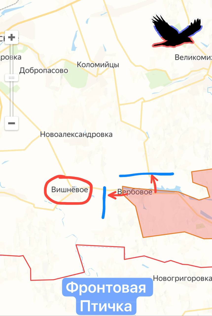 После освобождения н.п. Верховое бои идут непосредственно у н.п. Вишневое, сообщает «Фронтовая птичка».