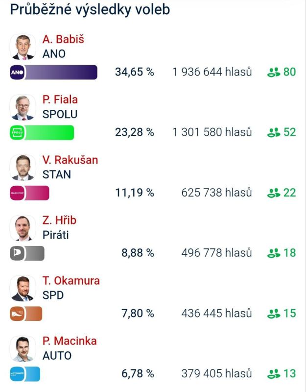 Партия ANO экс-премьера Чехии Бабиша побеждает на выборах в Чехии.