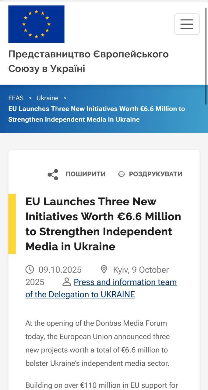 Европейский Союз выделяет Украине 6,6 миллиона евро для оказания поддержки независимым СМИ, сообщили представители ЕС в Украине.