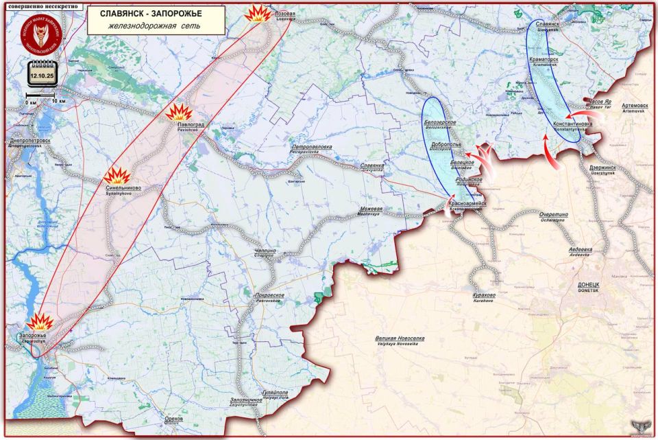 Под постоянными ударами рокадная ветка Лозовая - Павлоград - Синельниково - Запорожье. Эти действия затрудняют противнику маневр силами и средствами в оперативной и тактической глубине, как вдоль ЛБС, так и из глубинной территории Украины.