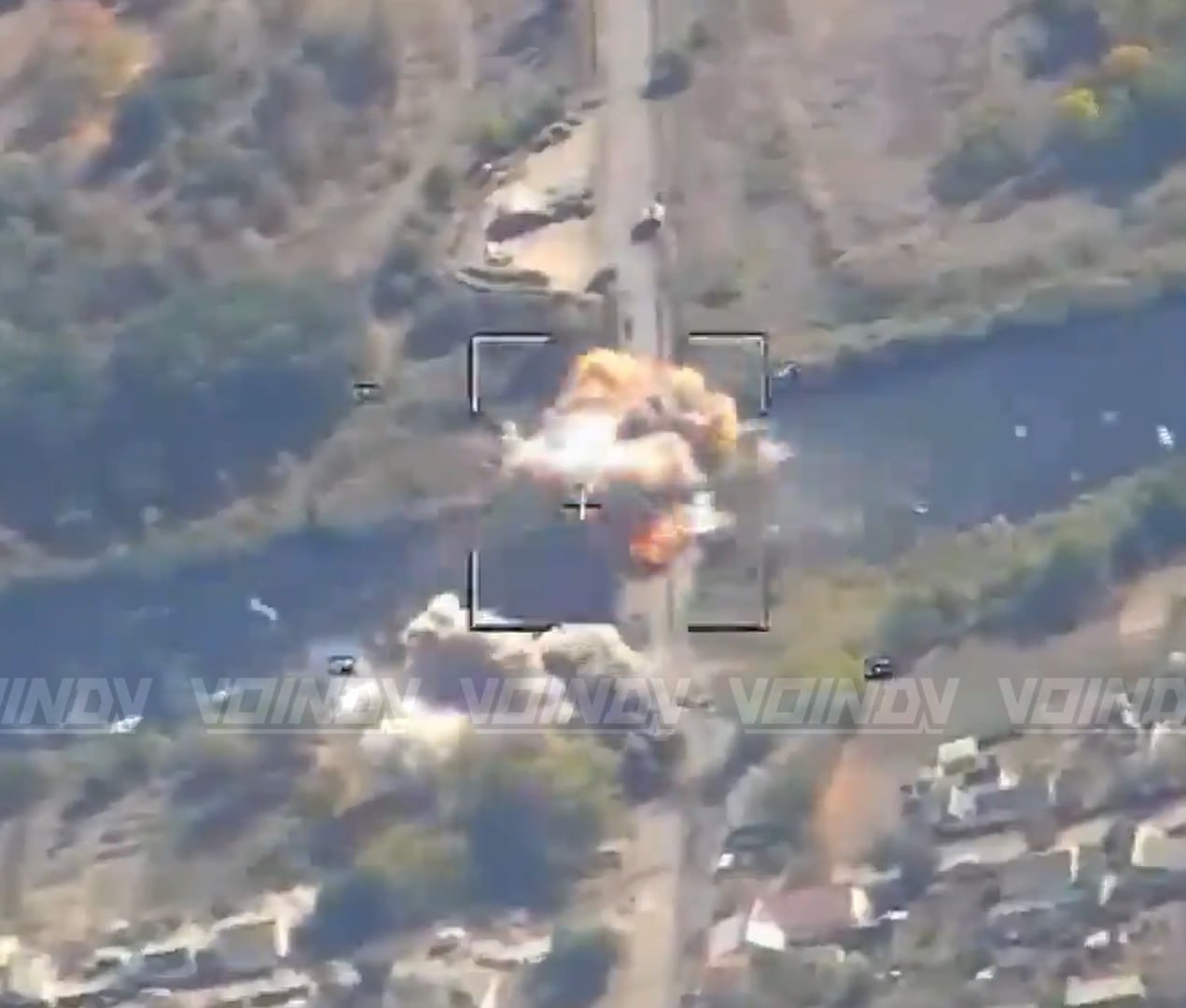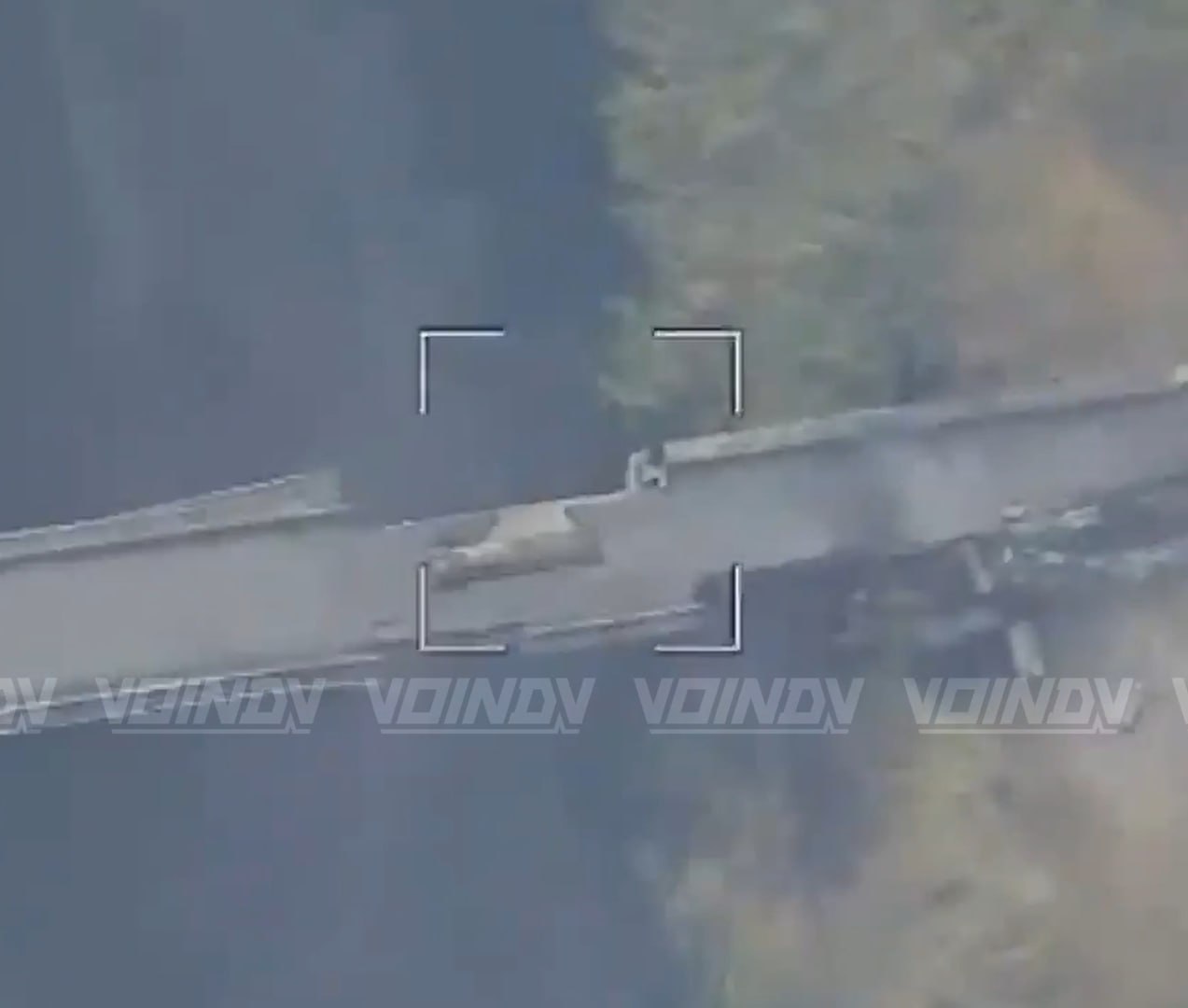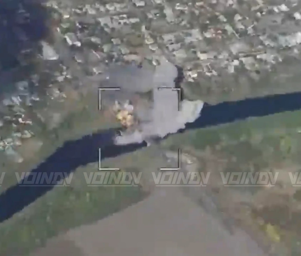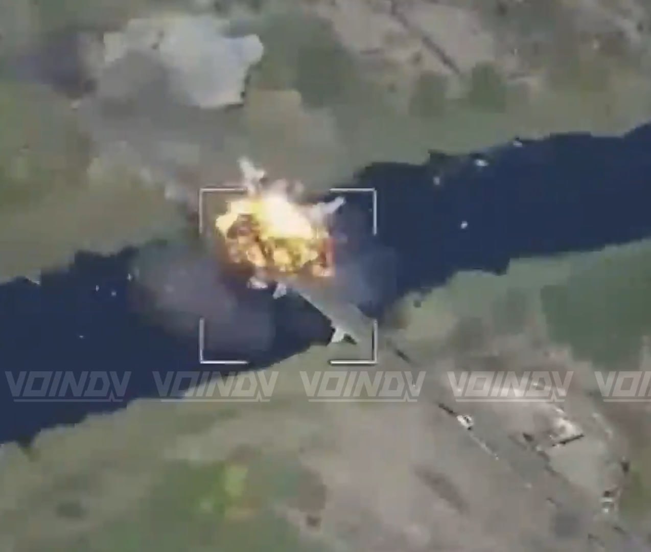 Поражение одного из трех мостов через реку Волчья ударами ФАБ-500 с УМПК в поселке Покровская Днепропетровской области. Видео: @voin_dv