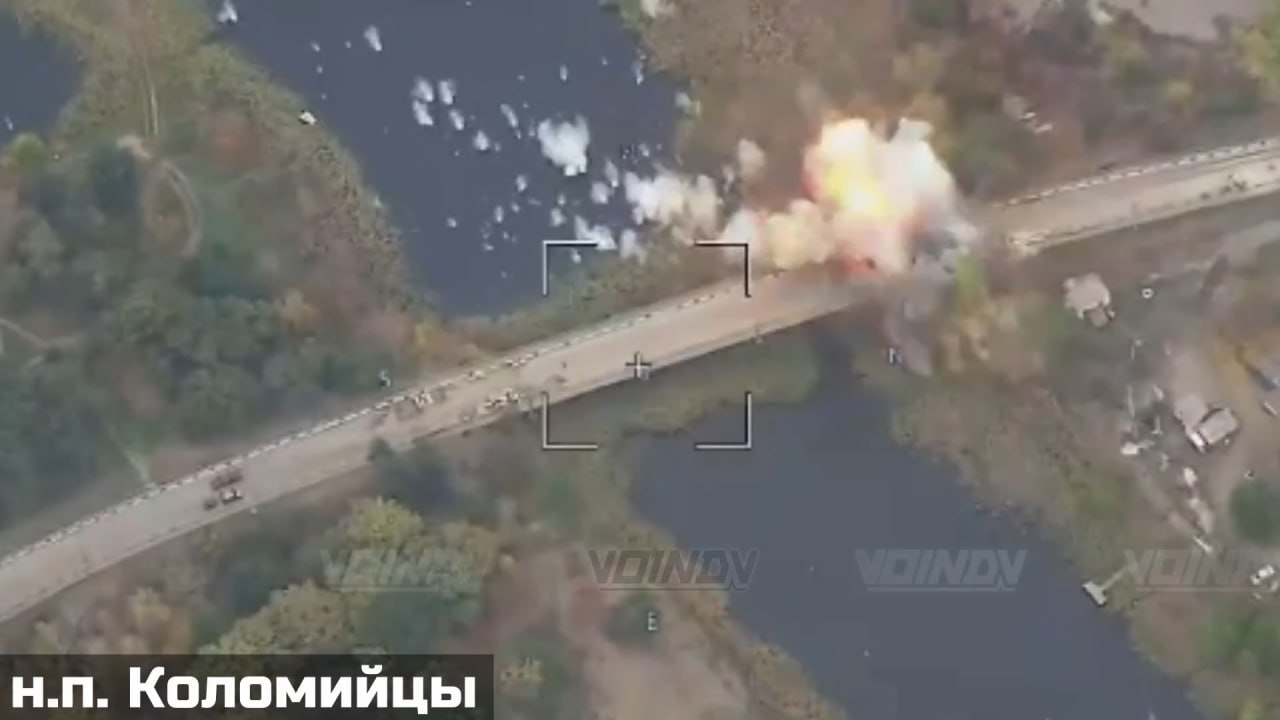 Следует отметить значительные промахи при таких ударах. В первом случае по мосту попала 1/4 бомб, во втором случае 2/4 бомб. Далеко не факт, что таких попаданий достаточно для полного выведения переправы из строя, как ранее уже было с другим мостом в Покровском. Видео: @voin_dv