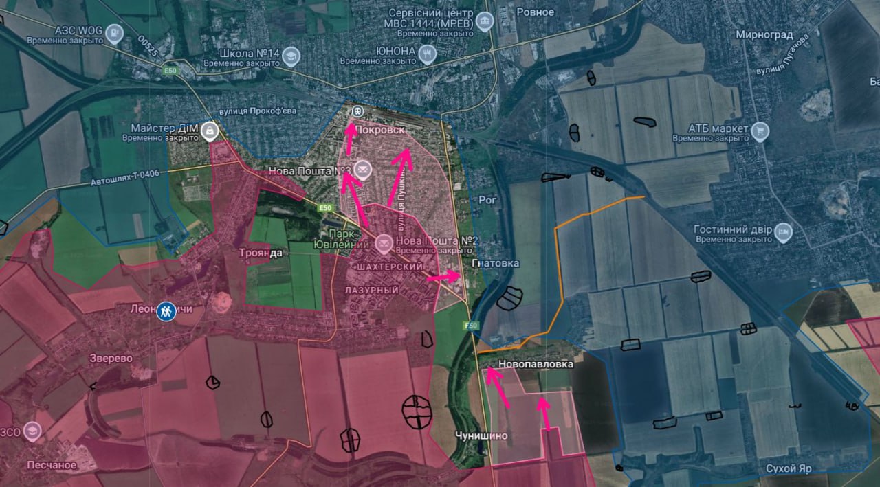 Продвижение Русской армии на юге Покровска, а также в Днепропетровской области.