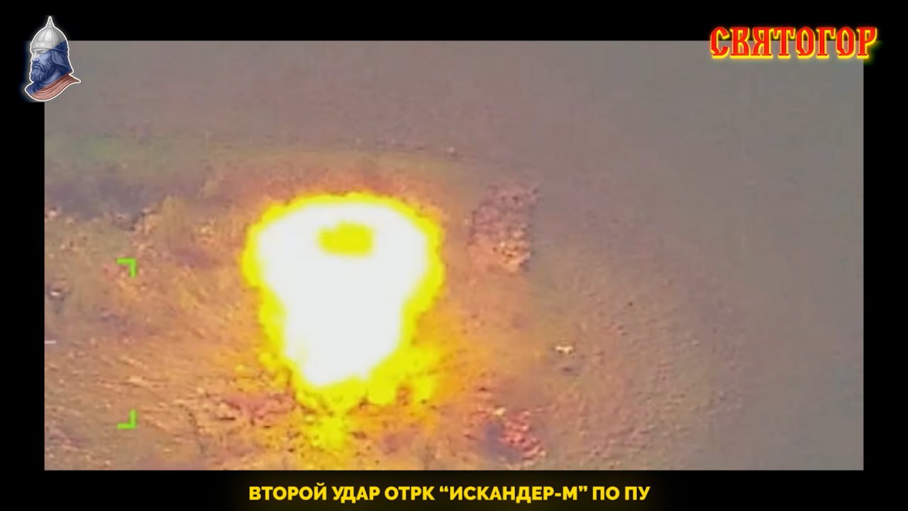 Архивные кадры ударов двух баллистических ракет ОТРК "Искандер-М" по РЛС и ПУ из состава ЗРК MIM-104 Patriot ВСУ возле Павлограда Днепропетровской области