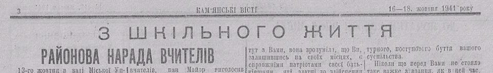 16 октября 1941 г., оккупационная газета Днепродзержинска "Каменские вести" (под редакцией ОУНовца, разумеется) поместила отчет о совещании учителей, организованном свидомой марионеткой нацистов Олексой Самийленко, - рассказывает Владимир КОрнилов.