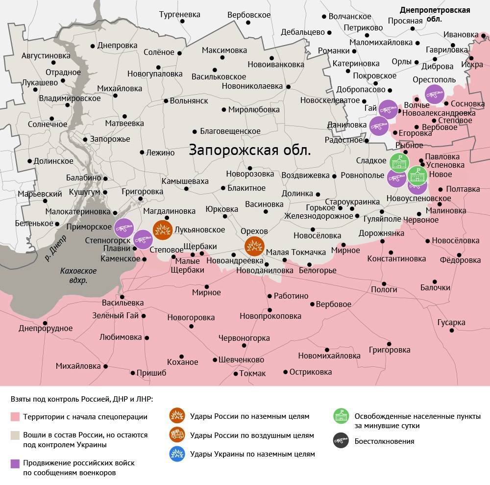 ВС РФ освободили еще два села — Новое и Сладкое — на стыке Запорожской и Днепропетровской областей и развивают наступление дальше, подойдя еще к трем населенным пунктам. Минобороны также сообщает об освобождении Гнатовки под Покровском. Продолжается и зачистка «котлов» в Покровске и Купянске.