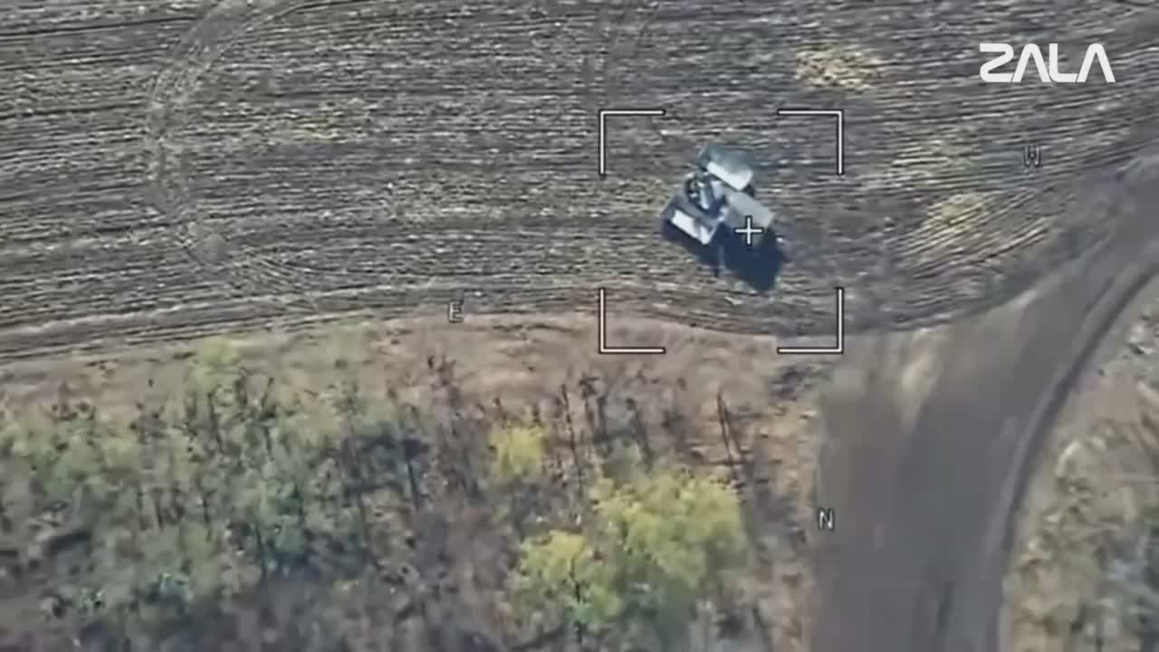 70-я дивизия 18-й общевойсковой армии ГрВ "Днепр" эффектно дроном-ждуном перевернула, а вторым - добила вражескую машину.Два майора