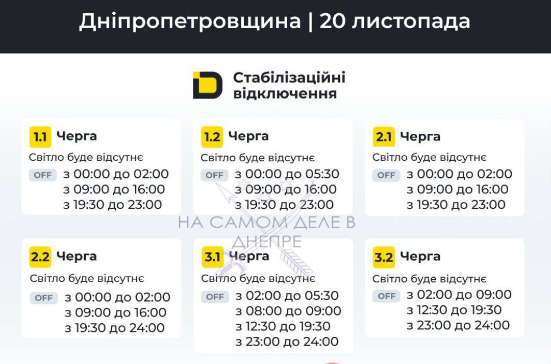 Днепропетровская область, график отключения электроэнергии.