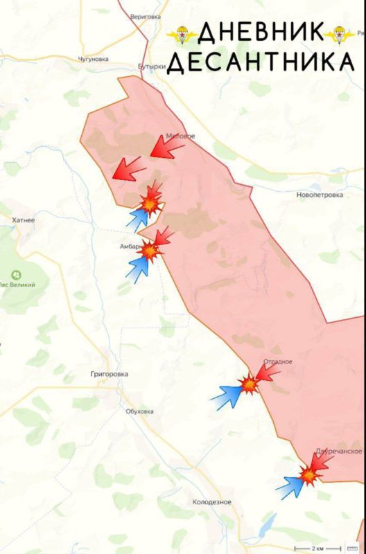 Кроме того, на участке Меловое - Хатнее российские воины возобновили наступление в ходе которого продвинулись по лесам ещё на 700 м, сообщает канал «Дневник Десантника»