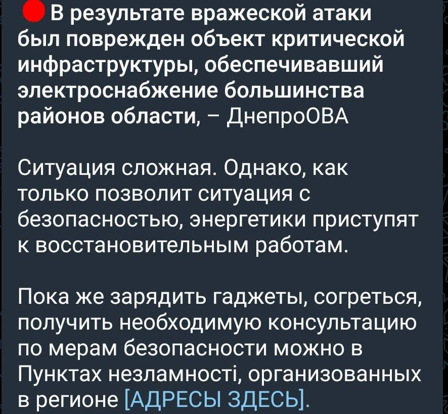 Все ТЭЦ и подстанции были остановлены в Павлограде , Каменском и Кривом Роге.
