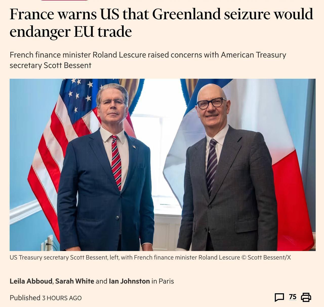 "Гренландия — суверенная часть суверенного государства, входящего в ЕС. С этим не следует шутить",— заявил Лескюр.