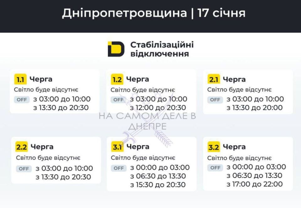 Днепропетровская область, график отключения электроэнергии