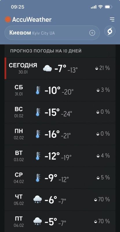 Кстати, никаких "экстремальных холодов" в Киеве не было весь январь.