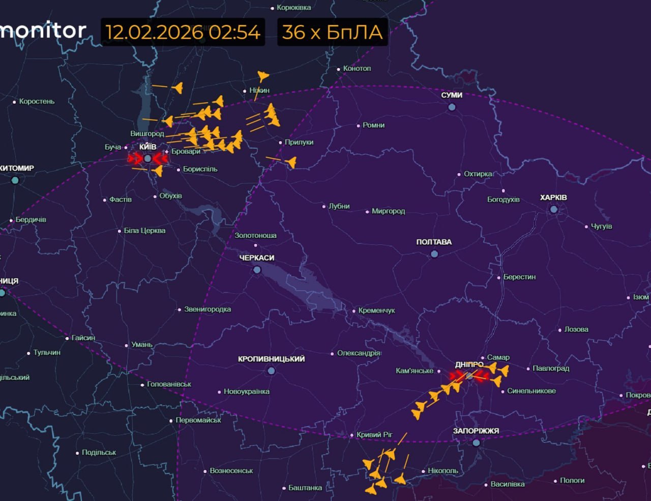 Обстановка по Гераням на данный момент. Киев и Днепропетровск в фокусе