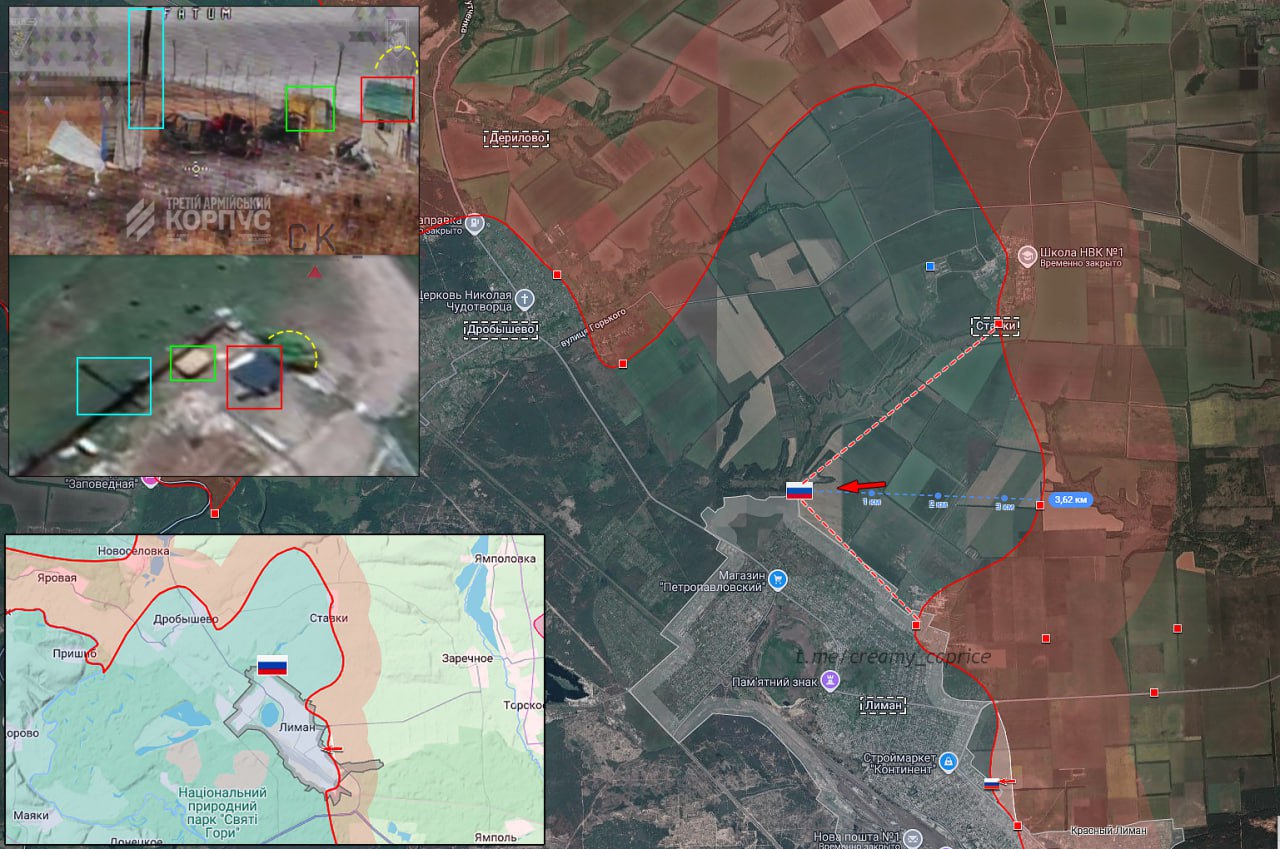 Штурмовики ВС РФ занимают новые позиции около въезда на краснолиманский полигон твёрдых бытовых отходов под огнём противника. ВС РФ продвигаются к Красному Лиману с севера и расширяют контролируемую территорию на 3,5 км.