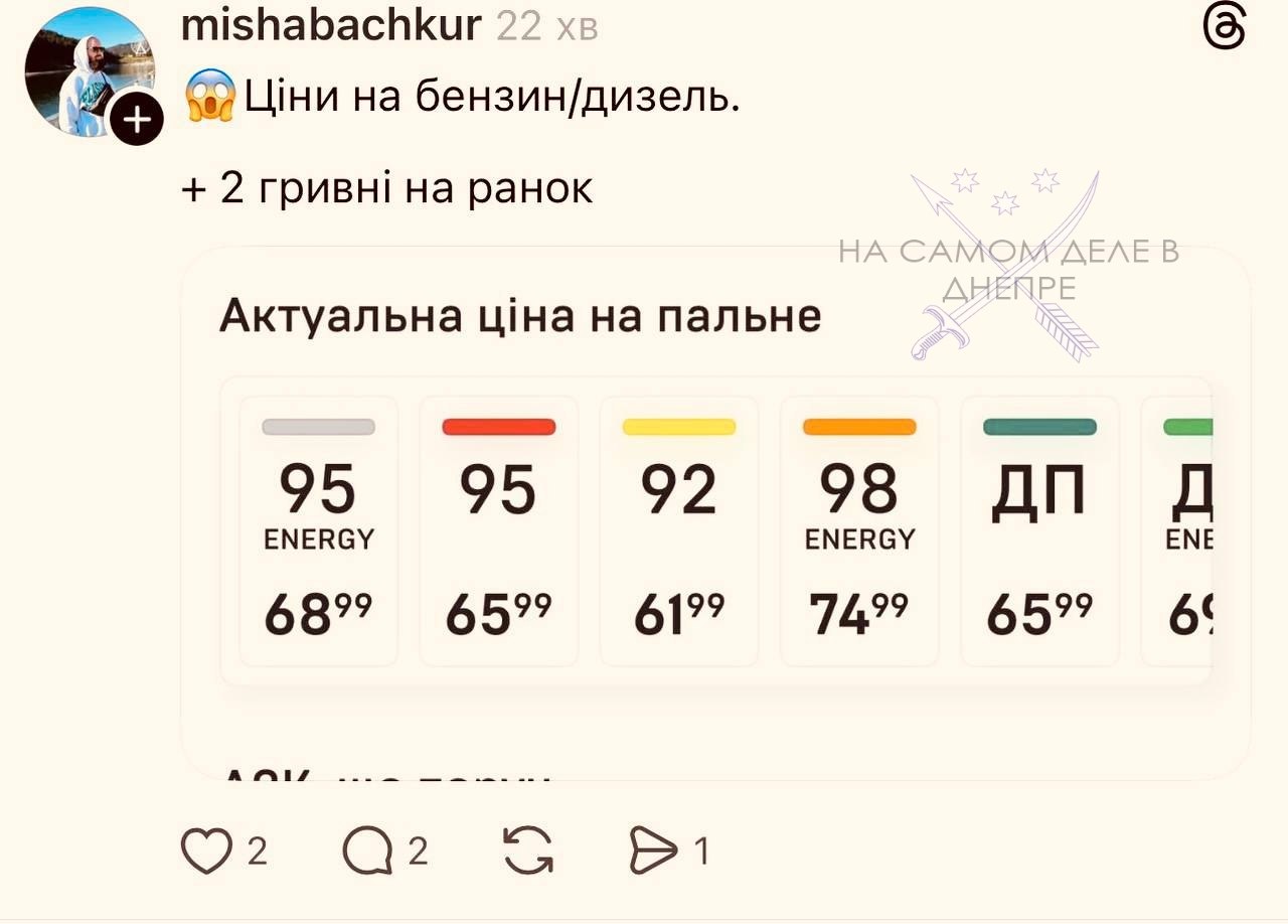 Из-за конфликта на Ближнем Востоке цены на бензин на украинских заправках выросли на 2 грн за последние сутки. В соцсетях громадяне массово жалуются на подорожание. Вот вам и очередные "покращення".