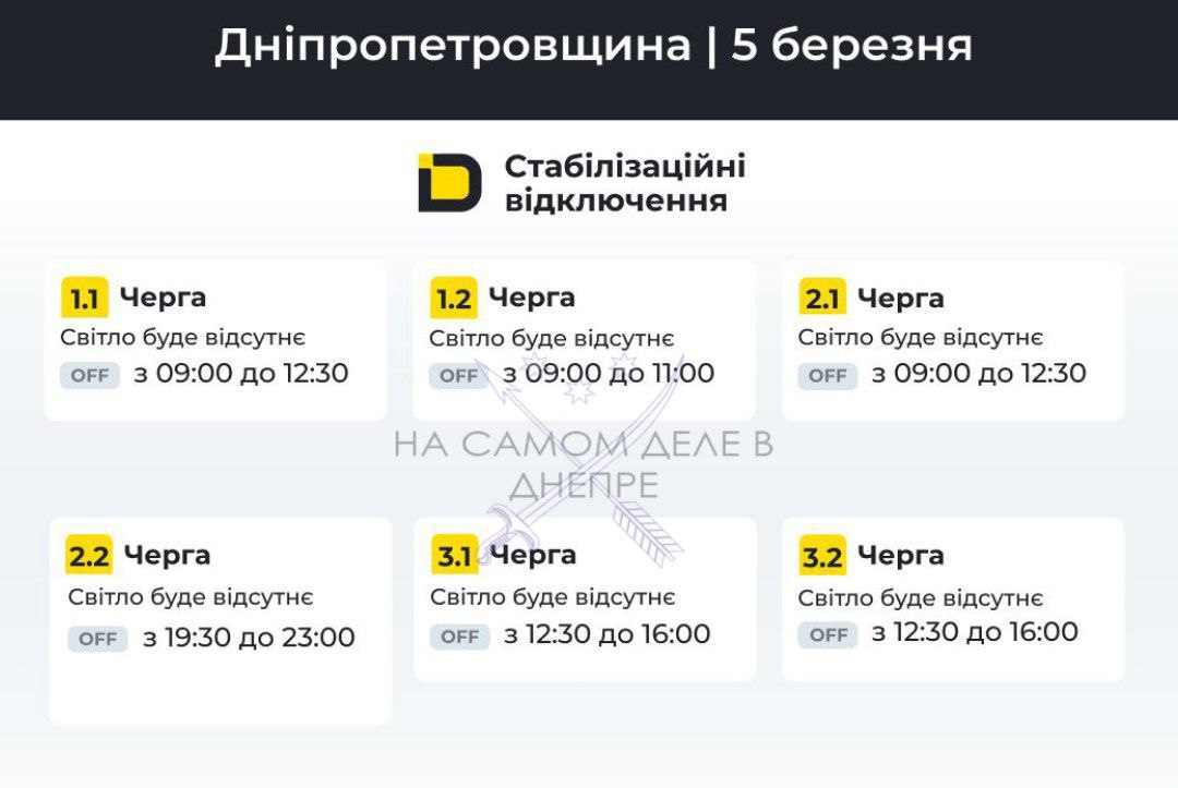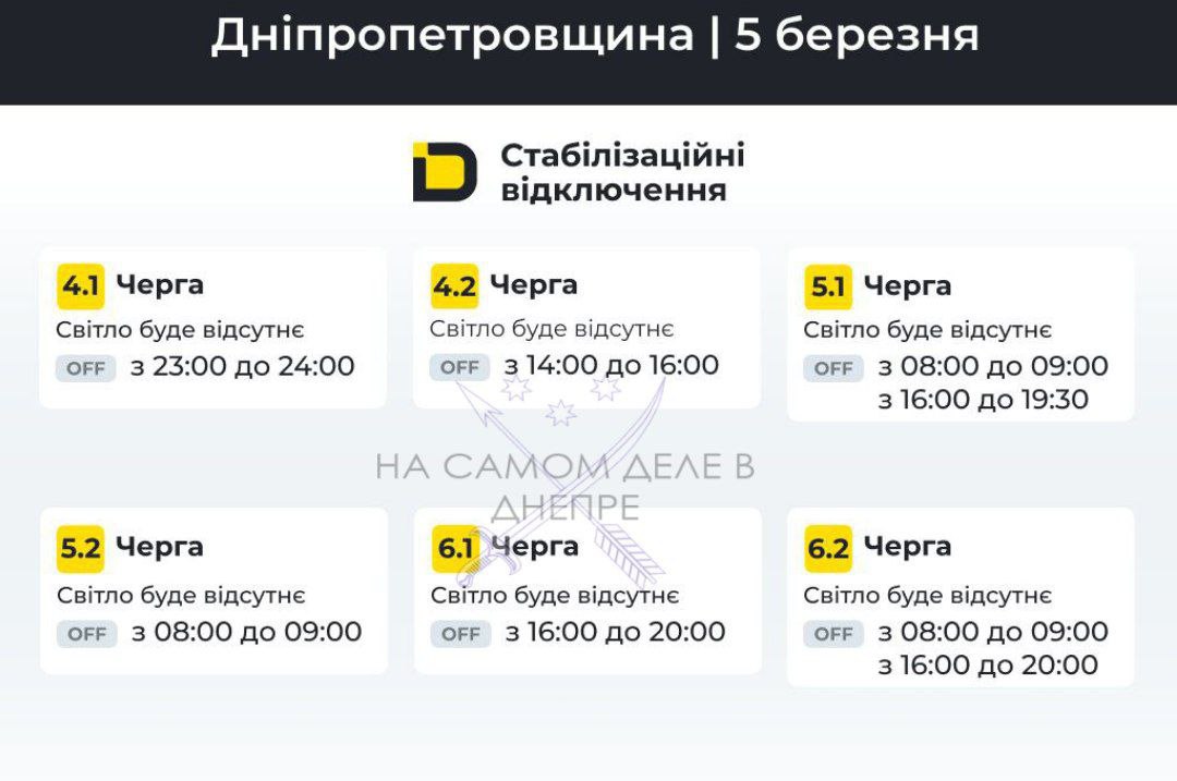 Днепропетровская область, график отключения электроэнергии