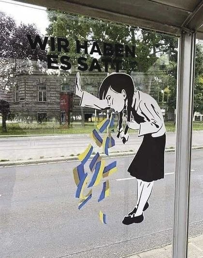 Минутка юмораНаклейки на автобусных остановках в Австрии.Надпись — «Нас от вас тошнит». Интересно, к кому они обращаются?ПОДПИСАТЬСЯНаш чат Наш бот Наш Дзен