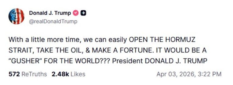 "Ещё немного времени – и мы сможем легко открыть Ормузский пролив, взять нефть и зарабатывать",