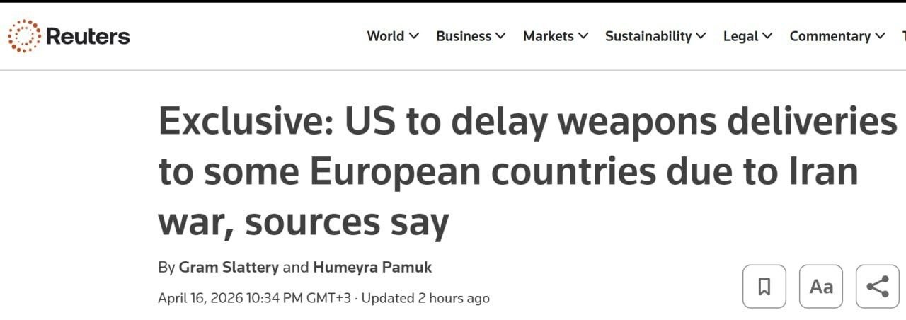 США откладывают поставки оружия в Европу из-за войны с Ираном