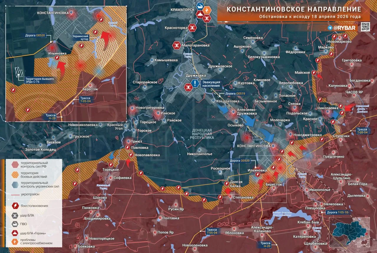 На Константиновском направлении российские войска предпринимают попытки выбить противника из Часова Яра. Параллельно с этим штурмовики постепенно продвигаются через застройку самой Константиновки, стремясь закрепиться в центре населенного пункта.