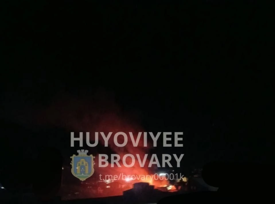 Поражена цель в Броварах Киевской обл (фото 2). Зафиксирован пожар на территории Бориспольского автобусного завода.