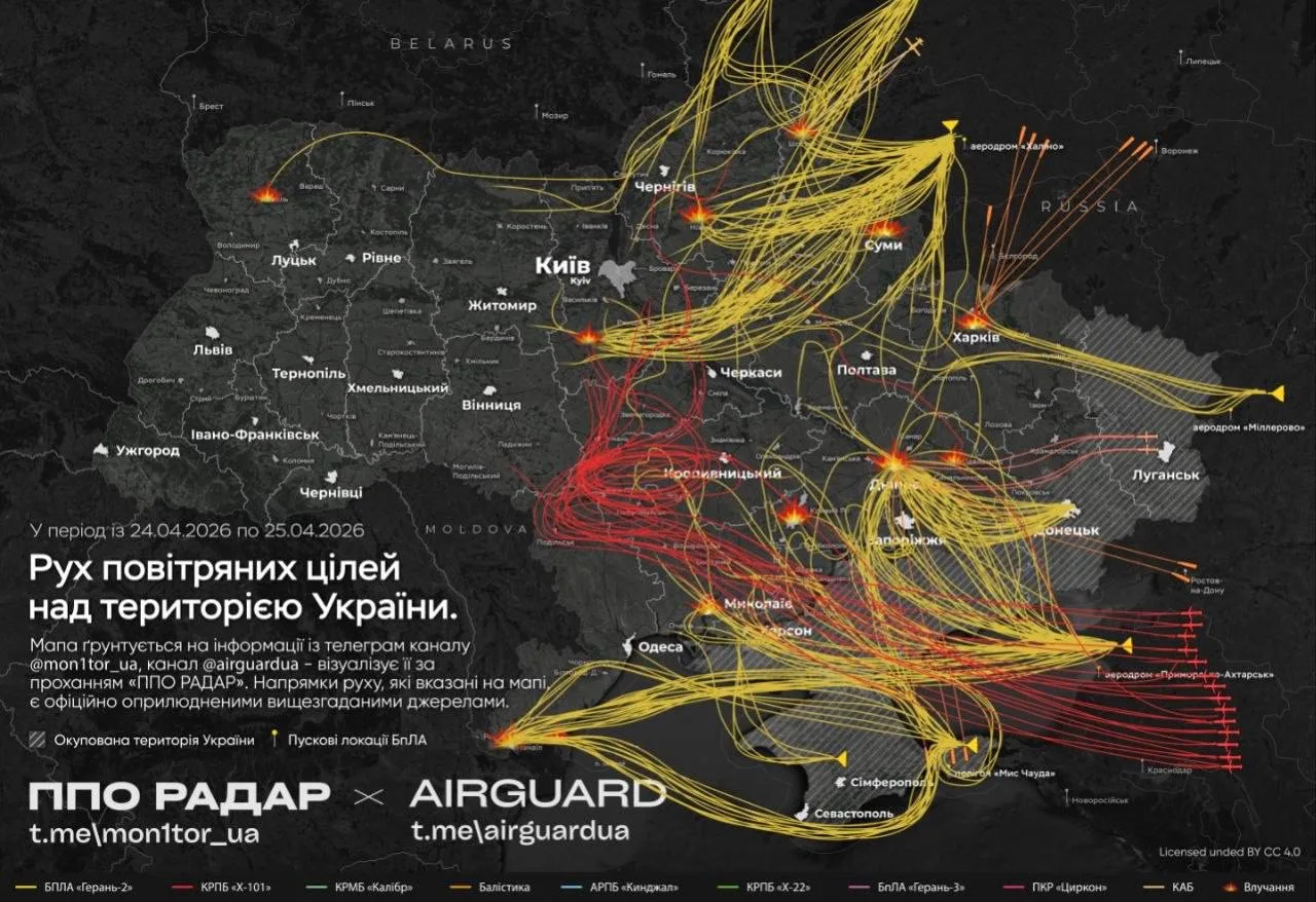 ХохлоСМИ публикуют направления полётов ракет и дронов, направляющихся к объектам ВСУ на Украине.